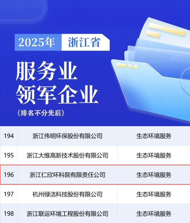 祝贺仁欣环科院荣获“2025年浙江省服务业领军企业